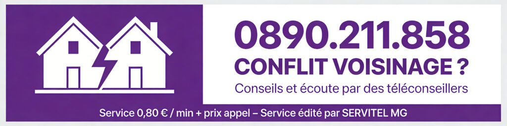 En plus de ces articles, CONFLIT-VOISINAGE.FR te propose un accompagnement par téléphone avec un téléconseiller spécialisé, pour t’aider à mettre de l’ordre dans tes démarches et à choisir les bons interlocuteurs en fonction de ta situation personnelle.